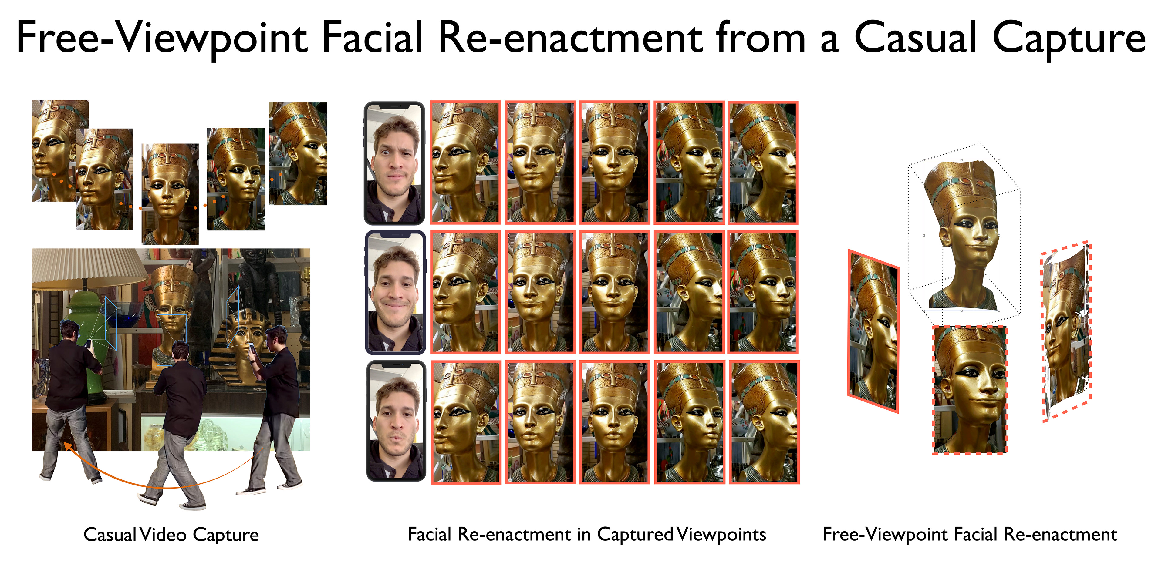 "Free-Viewpoint Facial Re-Enactment from a Casual Capture"